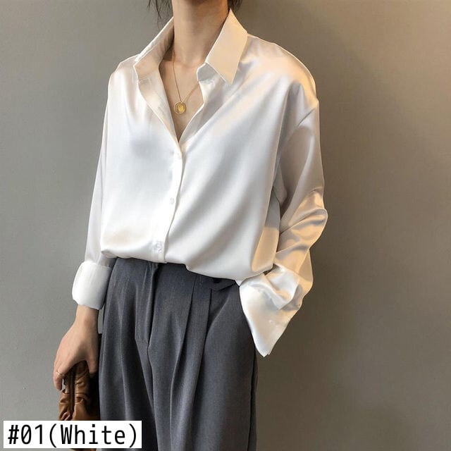 送料無料 女性のシルクシャツ 2023 春夏ヴィンテージボタンアップサテンブラウストップ長袖固体ルーズオフィスレディシャツ ロング スプリング 春物 サマー 夏物 ソリッドカラー ビンテージ 会社 学校 通勤や通学にも AE1212332271883056557