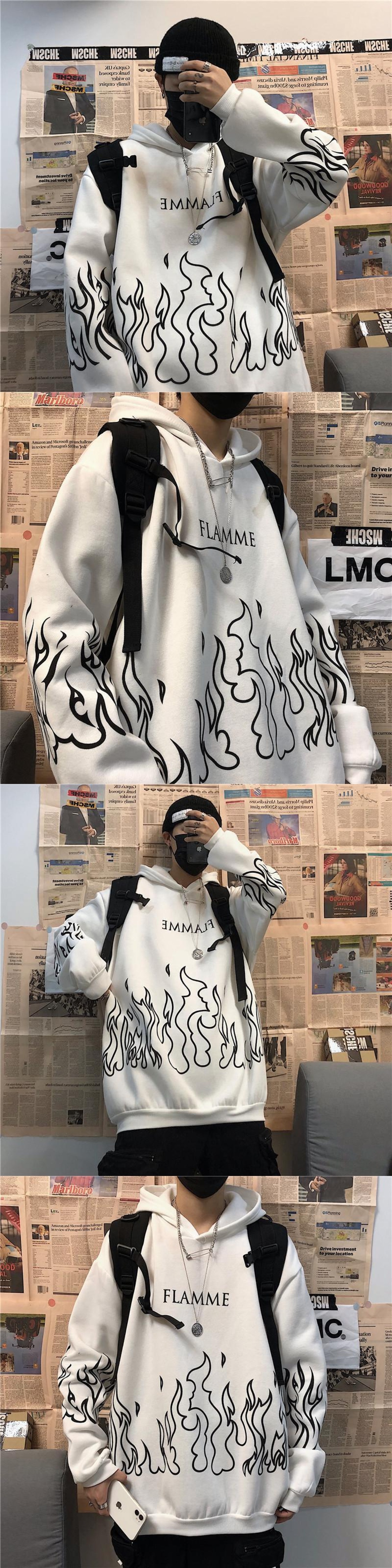 送料無料 原宿特大女性パーカー炎プリントトレーナースタイル秋長袖フード付きプルオーバートップス ロング かわいい オータム 秋物 AE1212332278036368467 | 女性の為の通販サイト-fashion navi