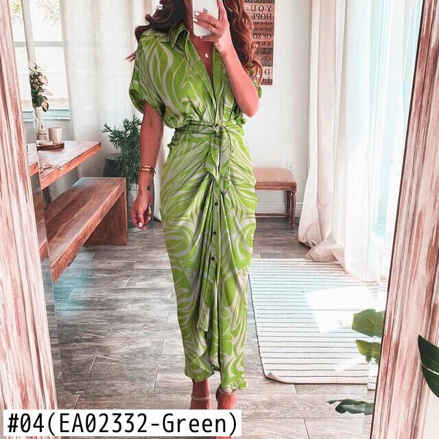 送料無料 女性ドレス 2023 夏プリント半袖シャツドレスヴィンテージウエストタイアップボタン包帯ロングドレスローブ ショート ハーフスリーブ サマー 夏物 ビンテージ AE1212332230199272315