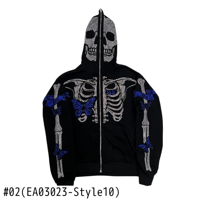 送料無料 Y2K フルジップアップパーカー男性秋冬ゴシックラインストーン蜘蛛の巣トレーナーヒップホップグランジスケルトン特大ジャケットコート オータム 秋物 ウィンター 冬物 AE1212332239793382195
