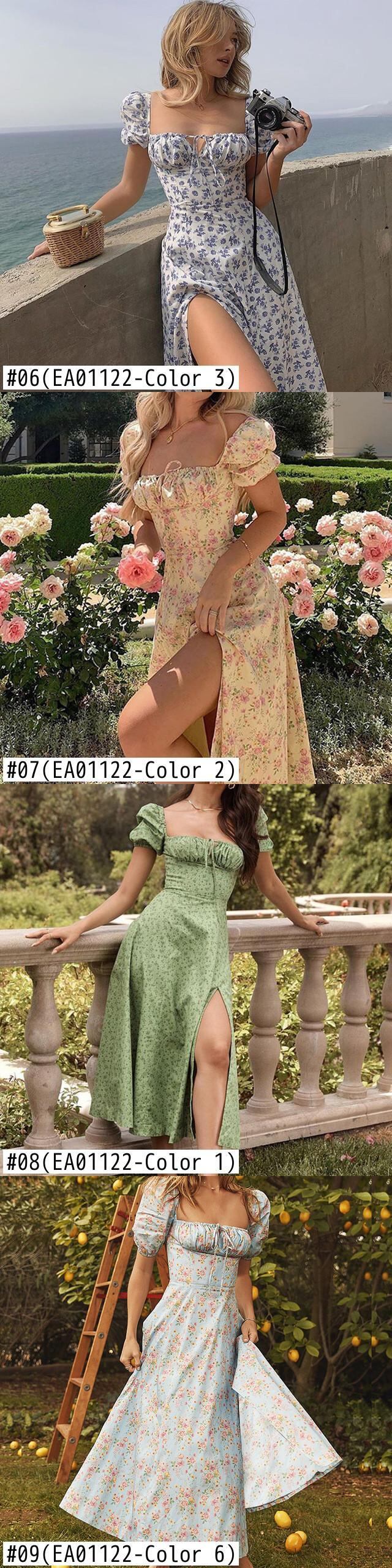 送料無料 花柄ロングドレス女性の夏のパフスリーブスクエアカラーサンドレスシックな A ラインスプリットビーチパーティードレス Vestidos サマー 夏物 Aライン スクウェア AE1212332233497045951 | 女性の為の通販サイト-fashion navi