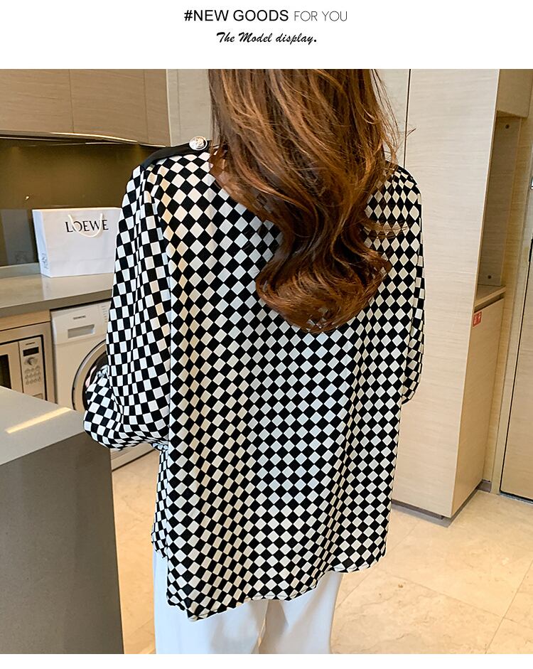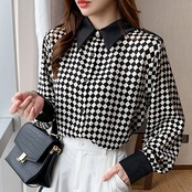 送料無料 Clic チェック柄の女性ブラウスターンダウン襟シャツ 2022 春秋の女性シフォントップス長袖ブラウス ロング スプリング 春物 オータム 秋物 AE1212887766354351299