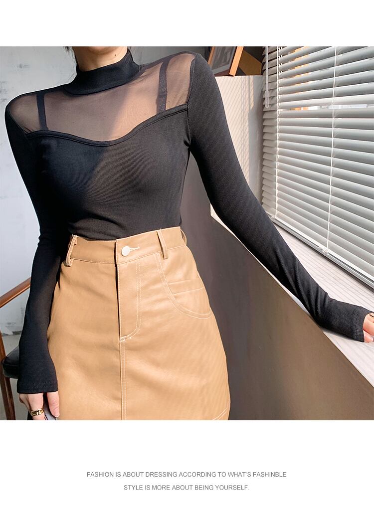 送料無料 女性 Tシャツガーゼパッチワーク女性 2022 ハーフタートルネック長袖 Tシャツ春秋服トップ ロング スプリング 春物 オータム 秋物 AE1212887723485411788