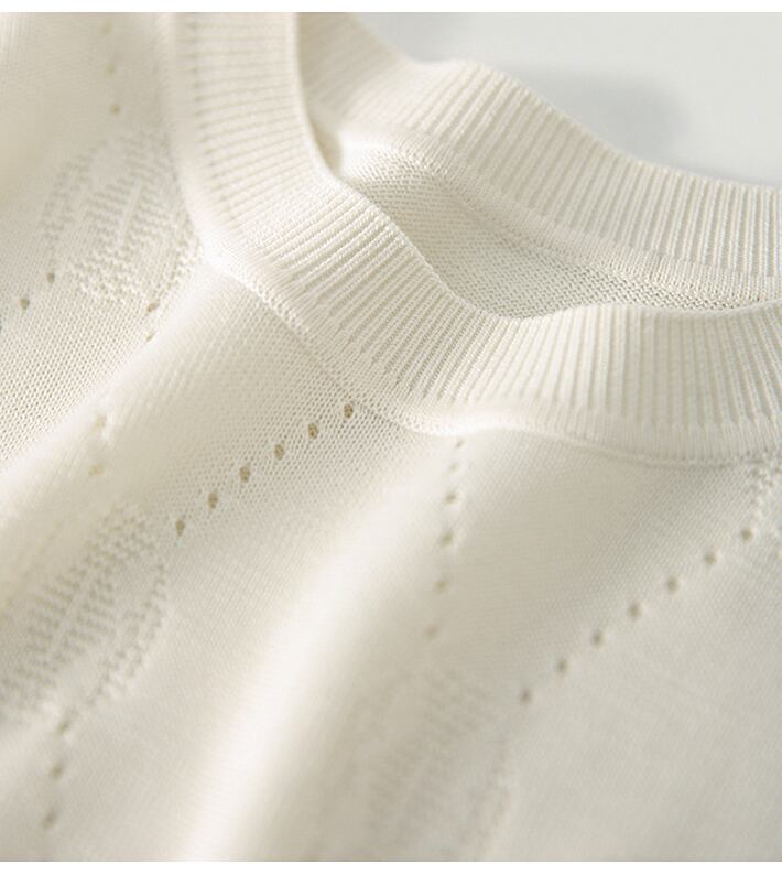 送料無料 中空アウト夏薄いプルオーバー女性白セーター 2022 半袖ニットトップスジャンパー O ネックルーズ Sweter ショート ホワイト ハーフスリーブ サマー 夏物 Oネック AE1212887723853425664