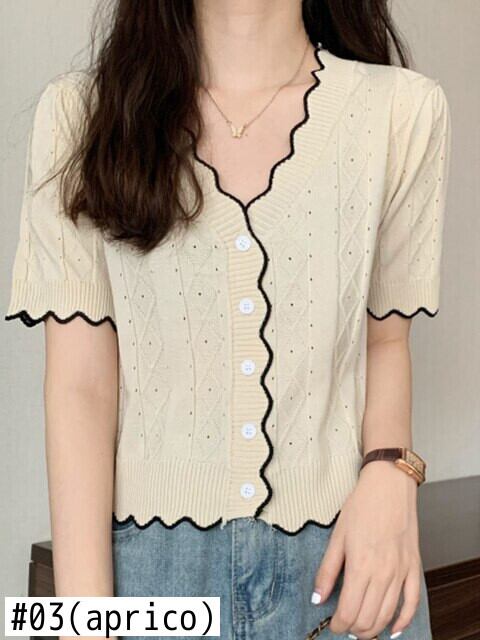 送料無料 カーディガン女性セーター 2022 夏薄型 V ネッククロップトップセーターボタン半袖黒ニットプル ショート ブラック ハーフスリーブ サマー 夏物 Vネック AE1212887782564447746 | 女性の為の通販サイト-fashion navi