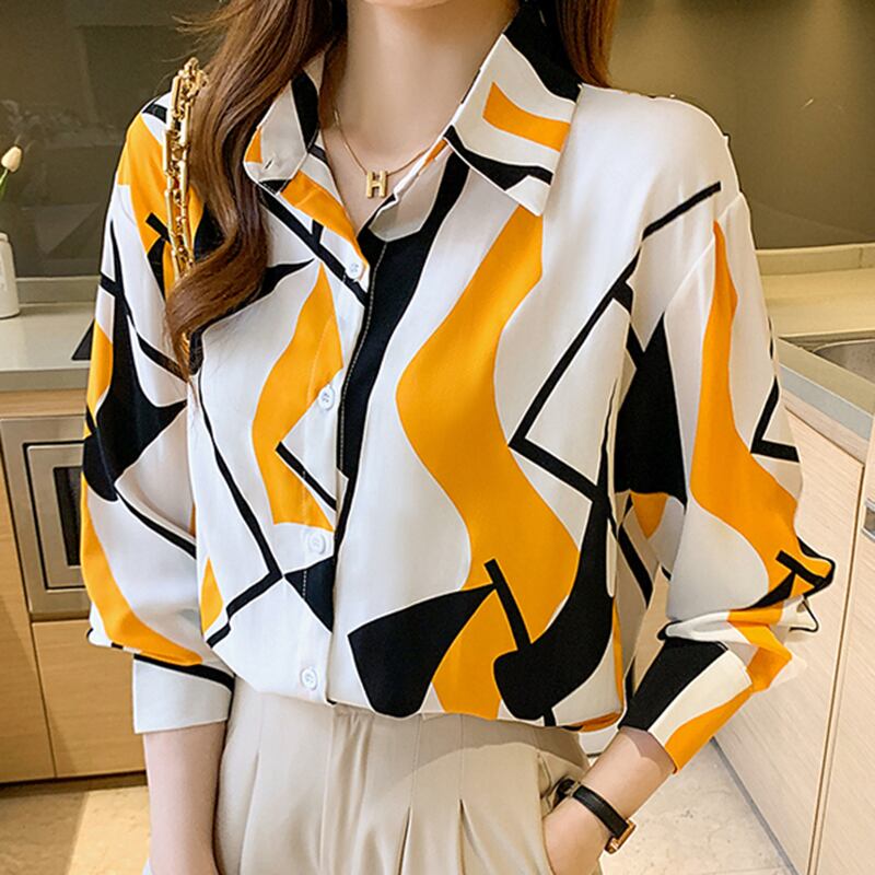 送料無料 女性長袖ブラウスシフォンコントラストカラートップ 2022 春ターンダウンカラーシャツ女性服 ロング スプリング 春物 AE1212887756889829603