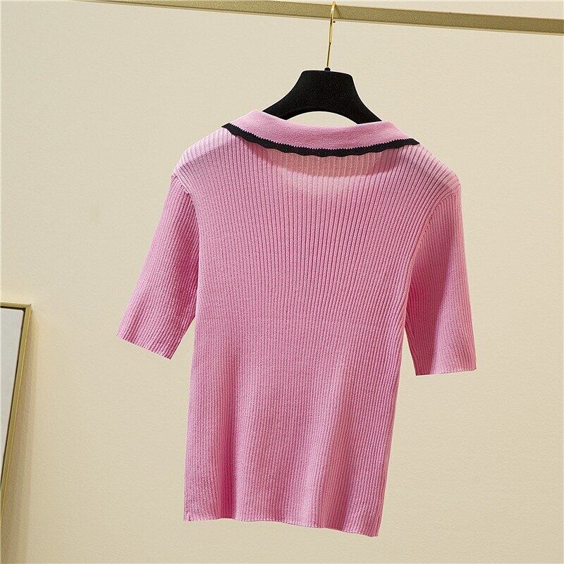 送料無料 アプリコットピンクニットトップス女性 2022 夏服固体半袖スリムプルオーバーセーターボタン ショート ハーフスリーブ サマー 夏物 ソリッドカラー AE1212887748419866831 | 女性の為の通販サイト-fashion navi