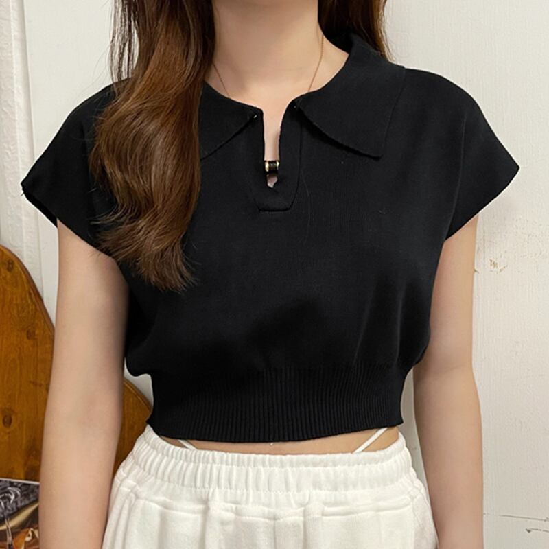 送料無料 2023 夏ニットショートトップス女性 Tシャツターンダウン襟婦人服半袖 Tシャツ固体 Tシャツたわごと ハーフスリーブ サマー 夏物 ソリッドカラー AE1212887752359638288