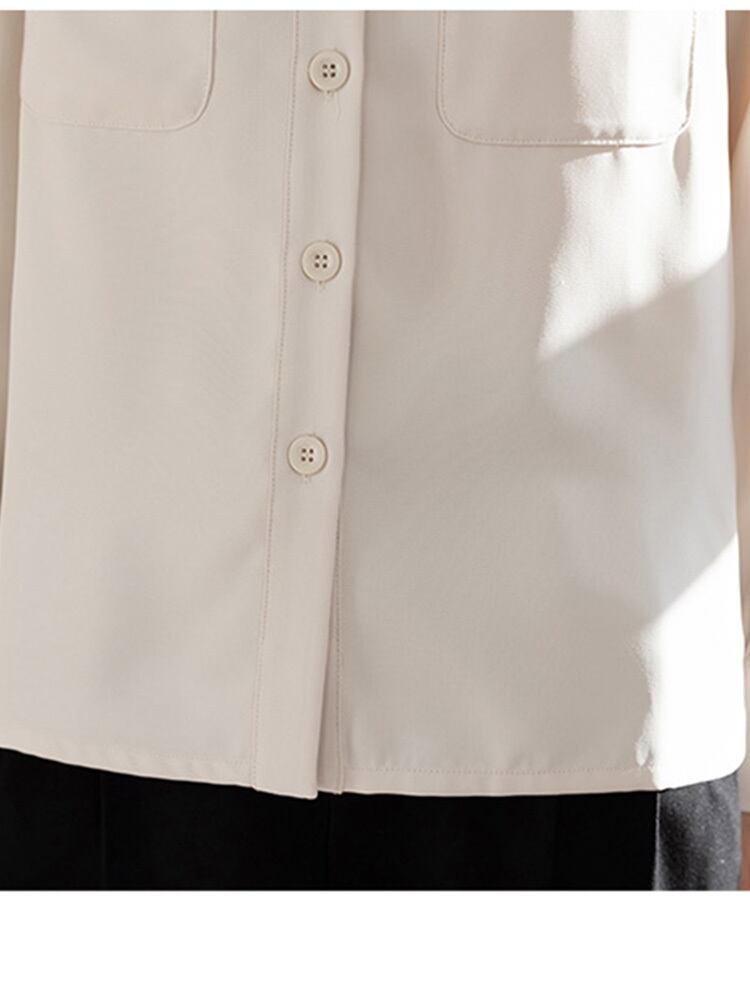送料無料 春秋のターンダウン襟シフォン長袖女性ブラウスポケットルーズオフィスレディ固体シャツ Roupas s ロング スプリング 春物 オータム 秋物 ソリッドカラー 会社 学校 通勤や通学にも AE1212887784654085654