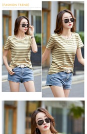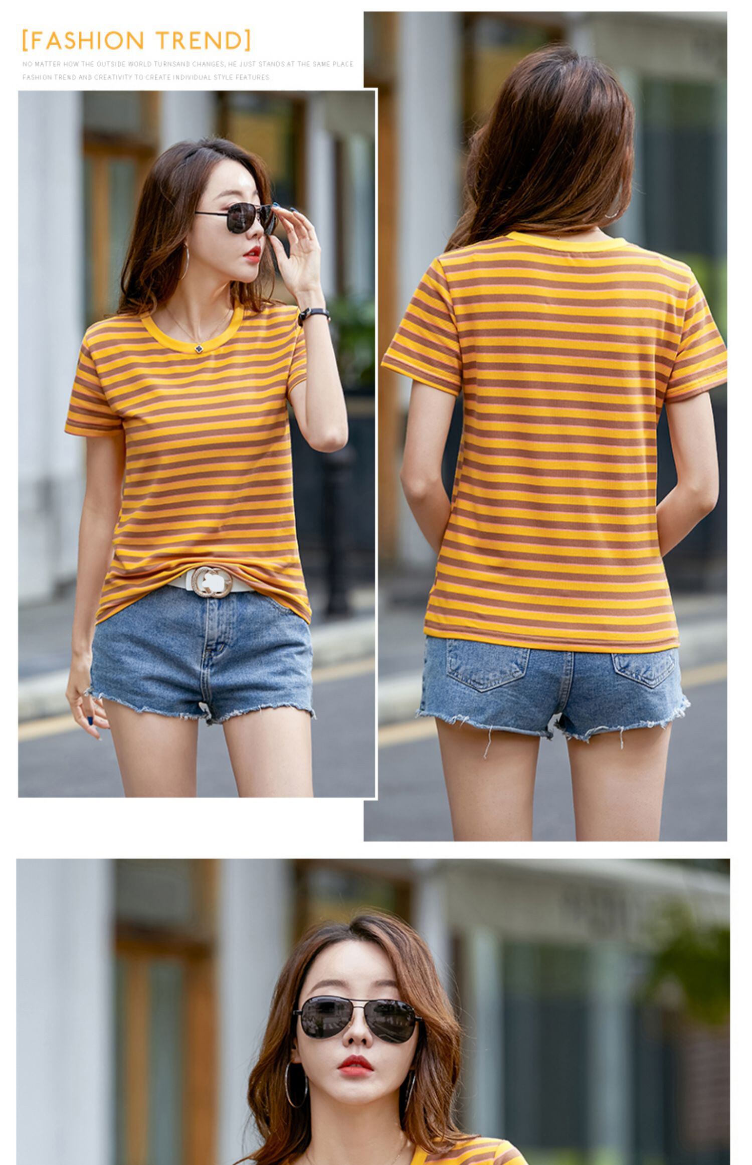 送料無料 Tシャツコットン Tシャツ女性ストライプ Tシャツ 2022 夏半袖 Tシャツスタイル O ネックトップス ショート ハーフスリーブ サマー 夏物 Oネック AE1212887742650553482