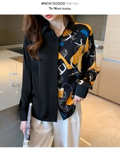 送料無料 ヴィンテージ対照的なカラープリントブラウス女性長袖トップターンダウンコラシャツシフォンブラウス 2022 春の女性の服 ロング スプリング 春物 ビンテージ AE1212887789091782362 | 女性の為の通販サイト-fashion navi