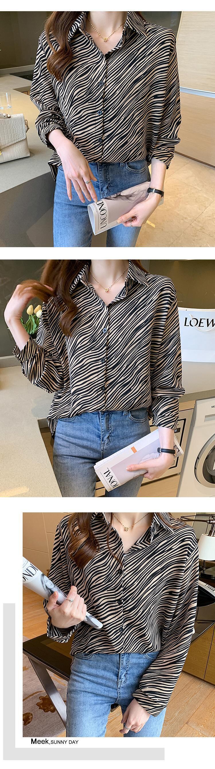 送料無料 ブラウス 2022 春ヒョウ柄トップ女性長袖シャツターンダウンカラーブラウスシフォン Blusa ロング スプリング 春物 AE1212887754751307737 | 女性の為の通販サイト-fashion navi