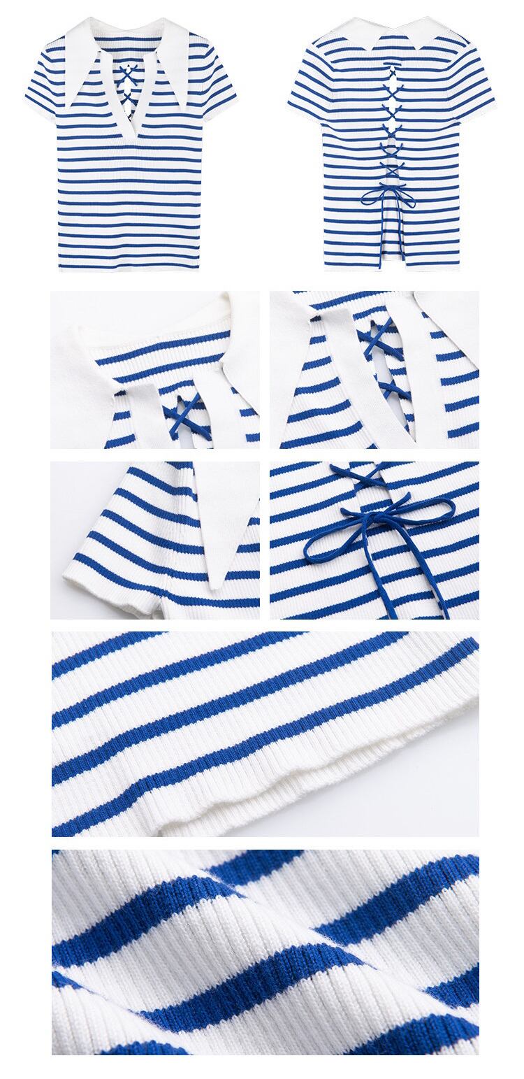 送料無料 V ネックニットトップス女性ストライプ Tシャツセクシーな背中の開いた包帯スリム Tシャツ夏半袖服 2022 ショート ハーフスリーブ サマー 夏物 AE1212887710936731959 | 女性の為の通販サイト-fashion navi