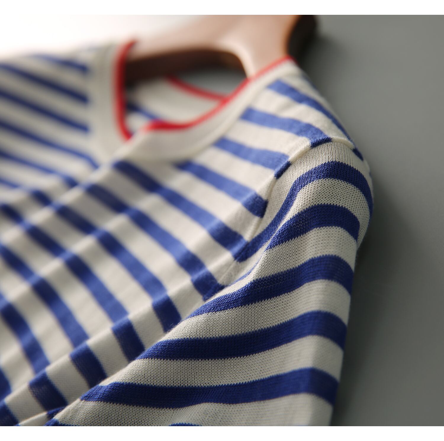 送料無料 2022 夏プルオーバーニットトップス半袖ストライプ薄いセーター女性 O ネック女性服セーターデ ショート ハーフスリーブ サマー 夏物 Oネック AE1212887716718024476 | 女性の為の通販サイト-fashion navi