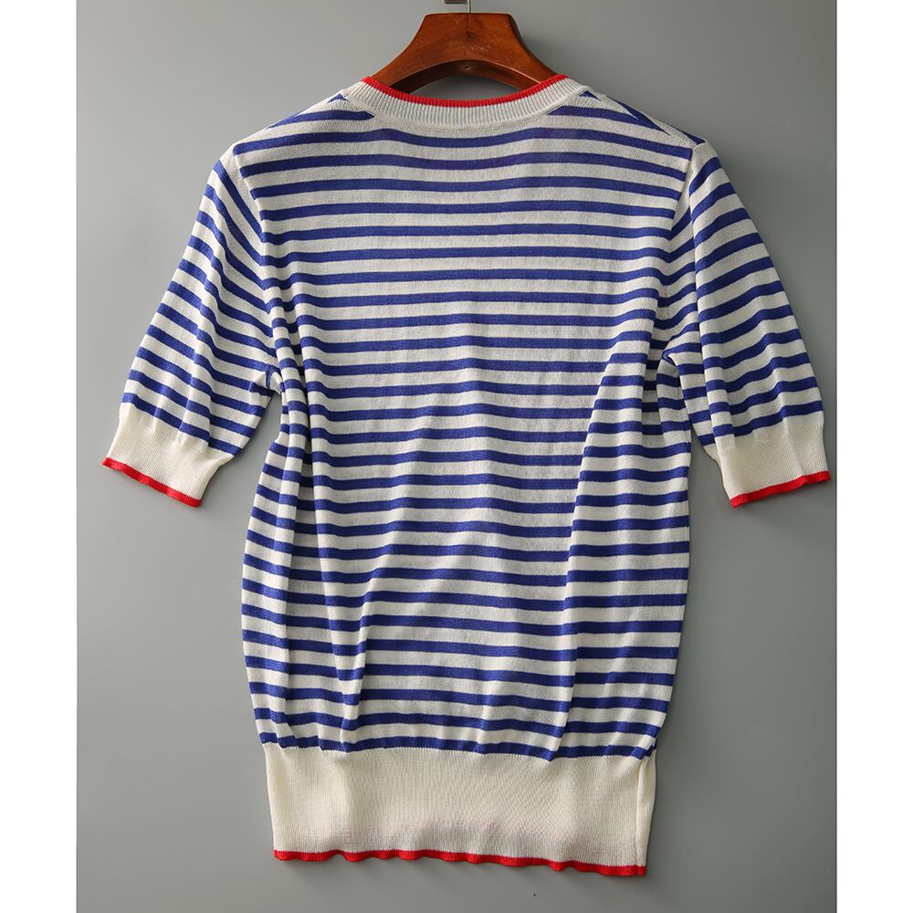 送料無料 2022 夏プルオーバーニットトップス半袖ストライプ薄いセーター女性 O ネック女性服セーターデ ショート ハーフスリーブ サマー 夏物 Oネック AE1212887716718024476