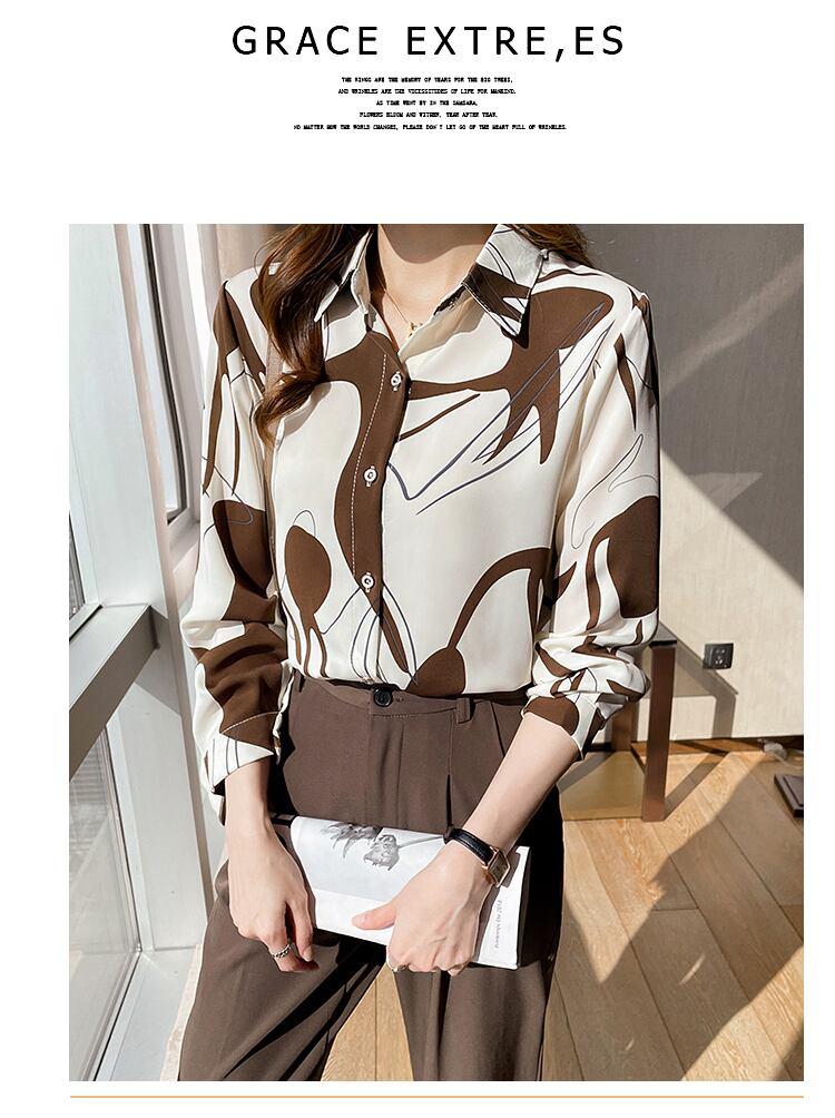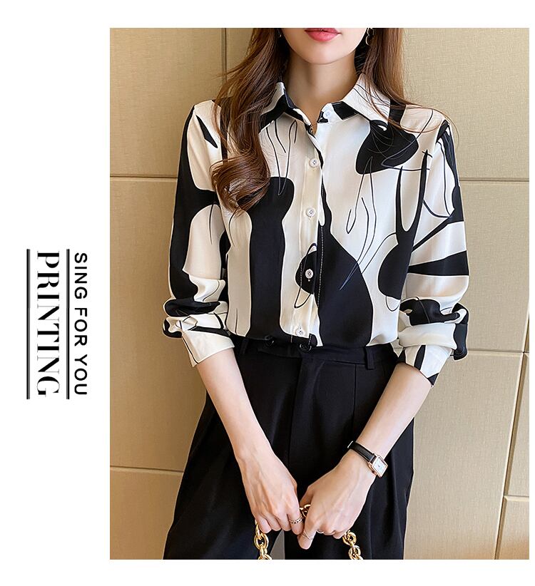 送料無料 2022 シフォンブラウス女性長袖シャツプリントブラウスターンダウンコラトップス春の女性の服 ロング スプリング 春物 AE1212887713023756224