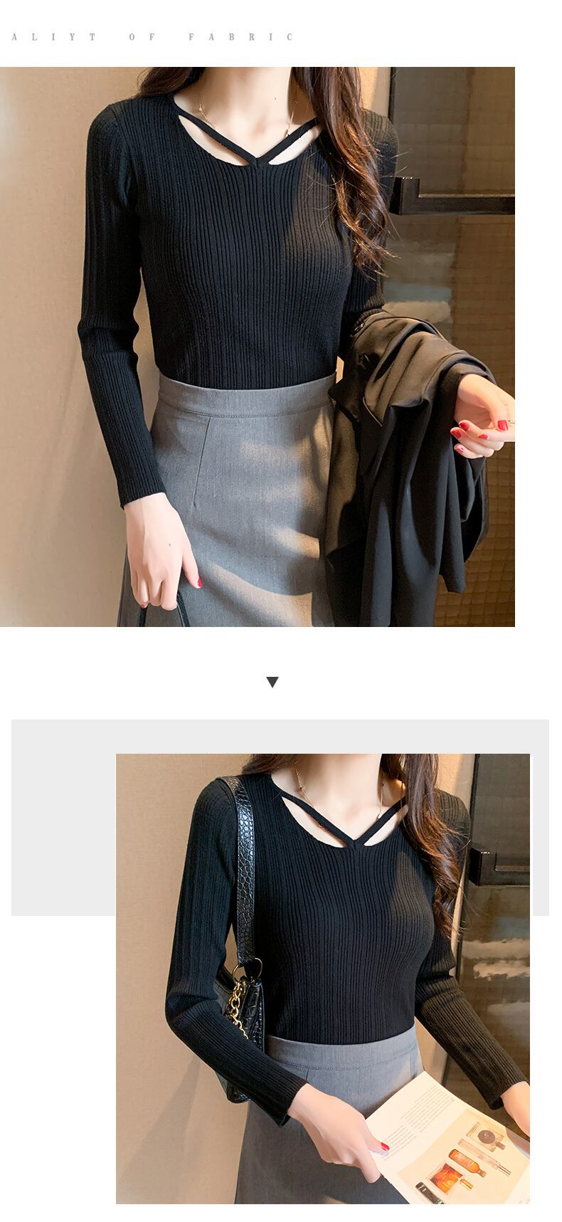 送料無料 セクシーなスリムニットプルオーバー春秋固体女性セーター長袖トップス V ネック女性服プル ロング スプリング 春物 オータム 秋物 Vネック ソリッドカラー AE1212887744751719071