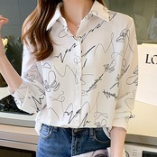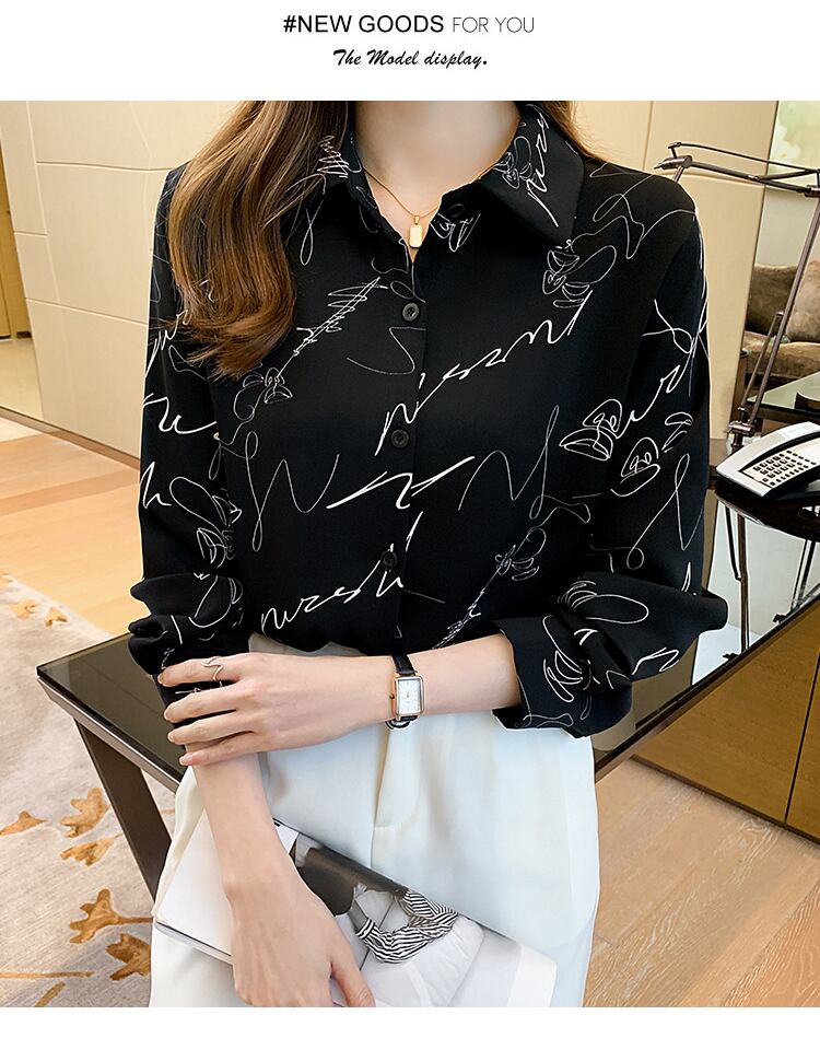 送料無料 ホワイトシフォンシャツ女性プリントブラウス春ターンダウンカラートップ長袖シャツ 2022 レディース ロング スプリング 春物 AE1212887729204400938