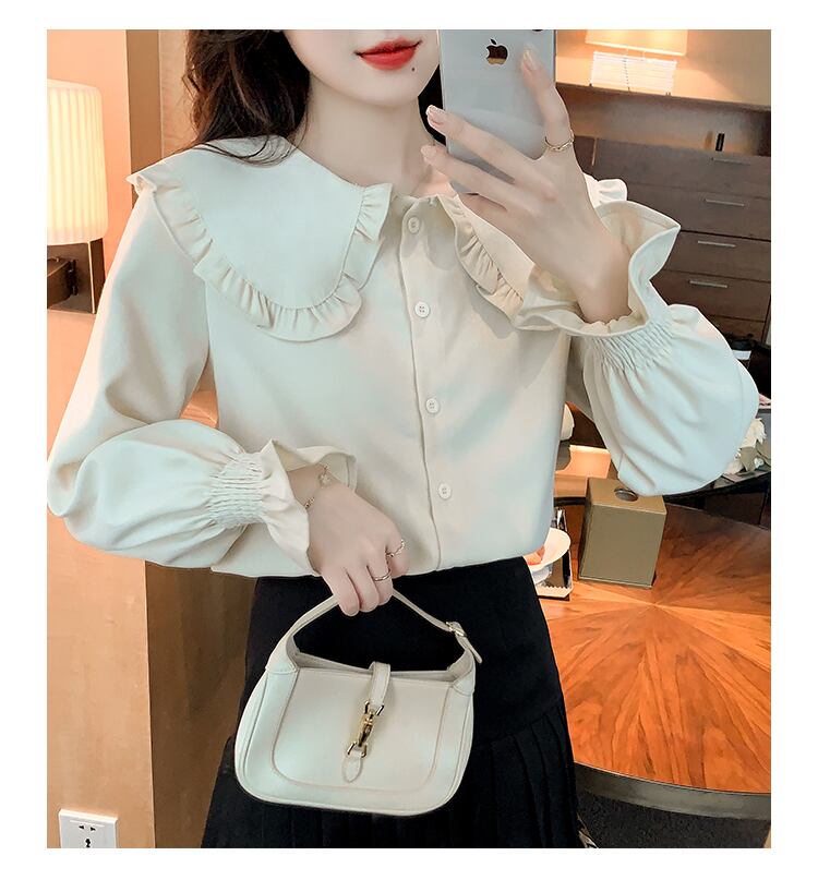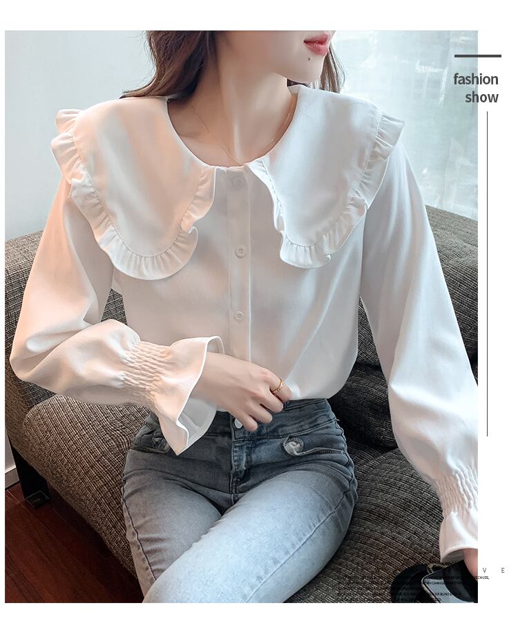 送料無料 2022 甘いピーターパン襟ブラウス女性白ブラウス婦人服トップス春固体長袖シャツ ロング ホワイト 大人ガーリー スウィート キュート カジュアル スプリング 春物 ソリッドカラー AE1212887734012654821 | 女性の為の通販サイト-fashion navi