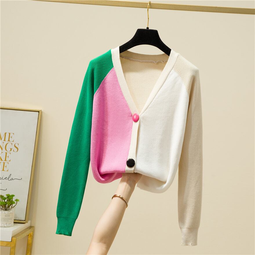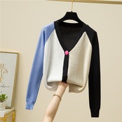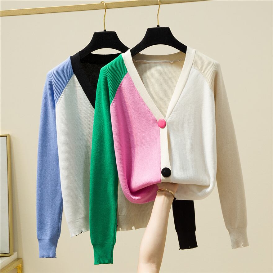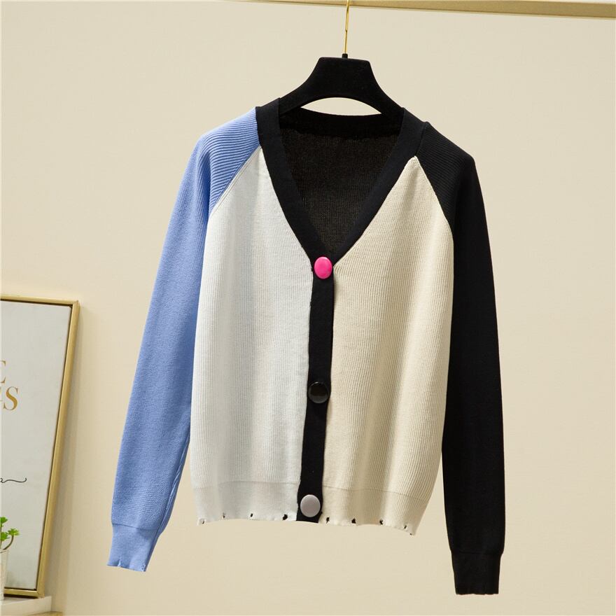 送料無料 カーディガンセーター女性 2023 秋冬コントラストカラーセーターレディースニット服長袖トップス ロング オータム 秋物 ウィンター 冬物 AE1212887738874492060