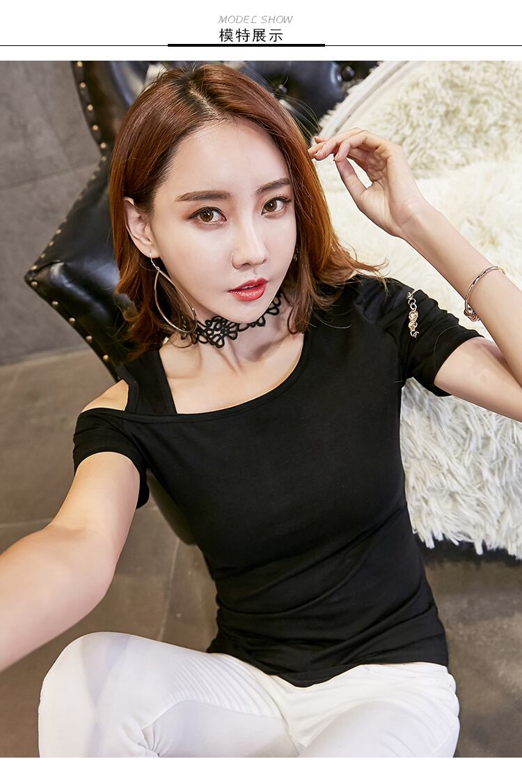 送料無料 Polaras Tシャツ女性のセクシーなトップス 2022 夏オフショルダー Tシャツ綿黒 Tシャツ女性服 ブラック コットン サマー 夏物 AE1212887738742231205
