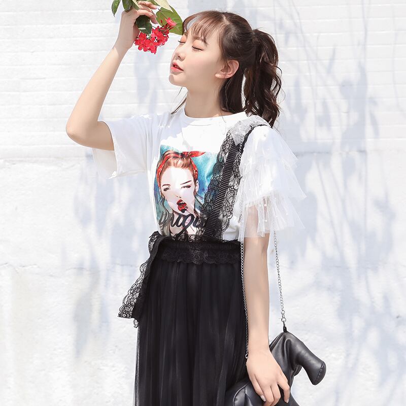 送料無料 夏ピンク白コットントップレースパッチワーク半袖 Tシャツ女性ビーズかわいい服 Tシャツ ショート ホワイト ハーフスリーブ 大人ガーリー スウィート キュート カジュアル サマー 夏物 AE1212887764669491582
