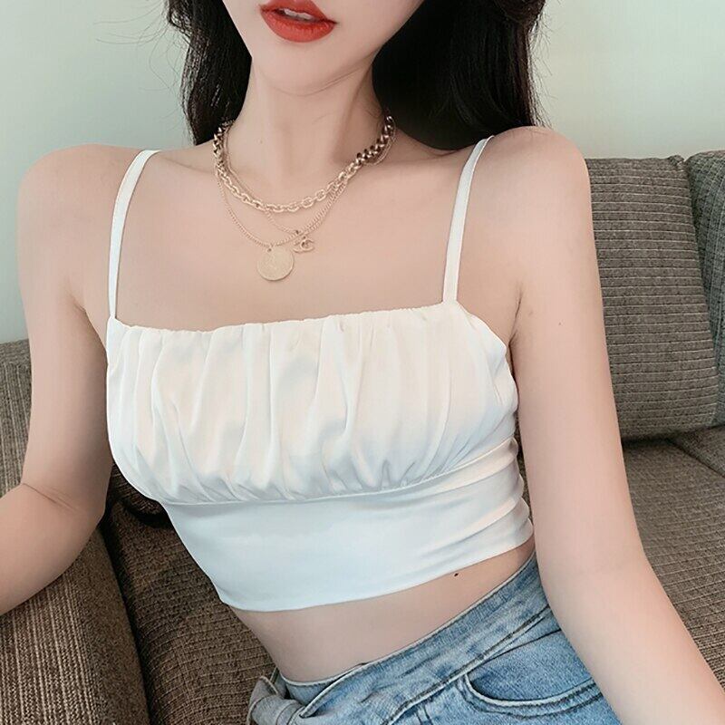 送料無料 2022 シルクトップキャミソールクロップトップ女性の夏のクロップトップスセクシーなホルターショートキャミ女性の服白黒 Ropa ホワイト ブラック サマー 夏物 AE1212887716676678008 | 女性の為の通販サイト-fashion navi