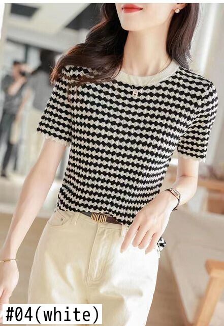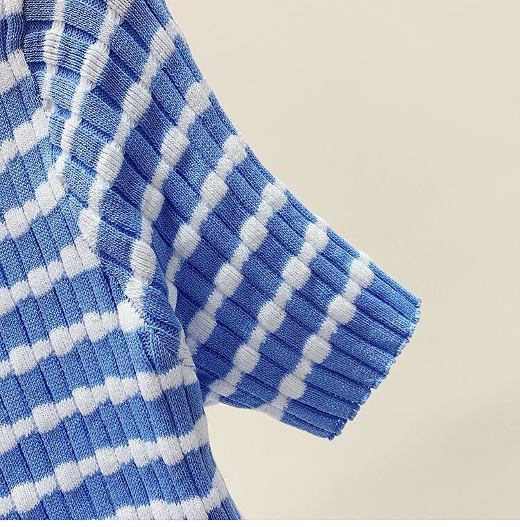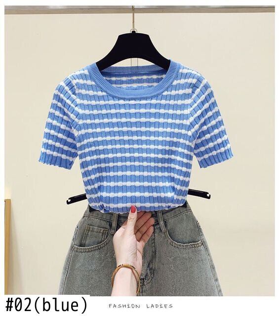 送料無料 LJSXLS レディース 2022 夏ストライプニット Tシャツ女性 Tシャツスリムトップス半袖 Tシャツ ショート ハーフスリーブ サマー 夏物 AE1212887717972250278