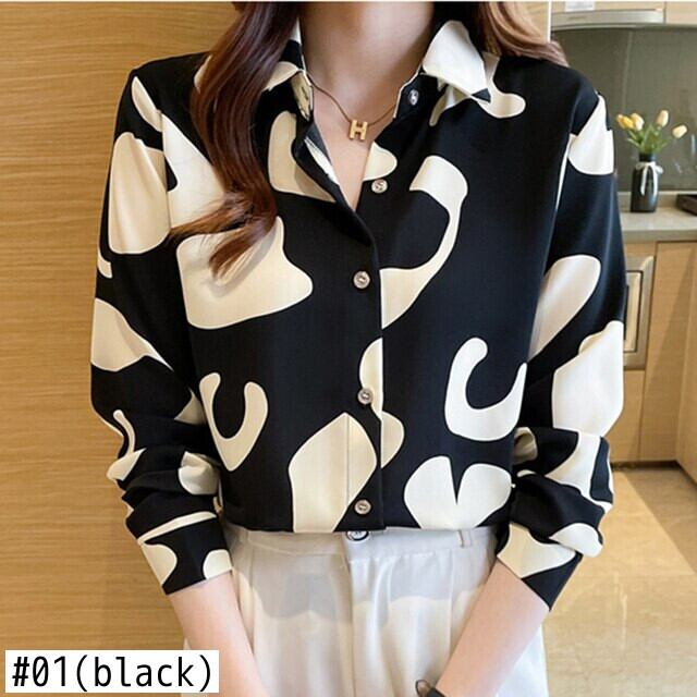 送料無料 プリントシフォンブラウス女性長袖シャツ女性ターンダウン襟レディーストップス 2022 春女性 ロング スプリング 春物 AE1212887785733060238 | 女性の為の通販サイト-fashion navi