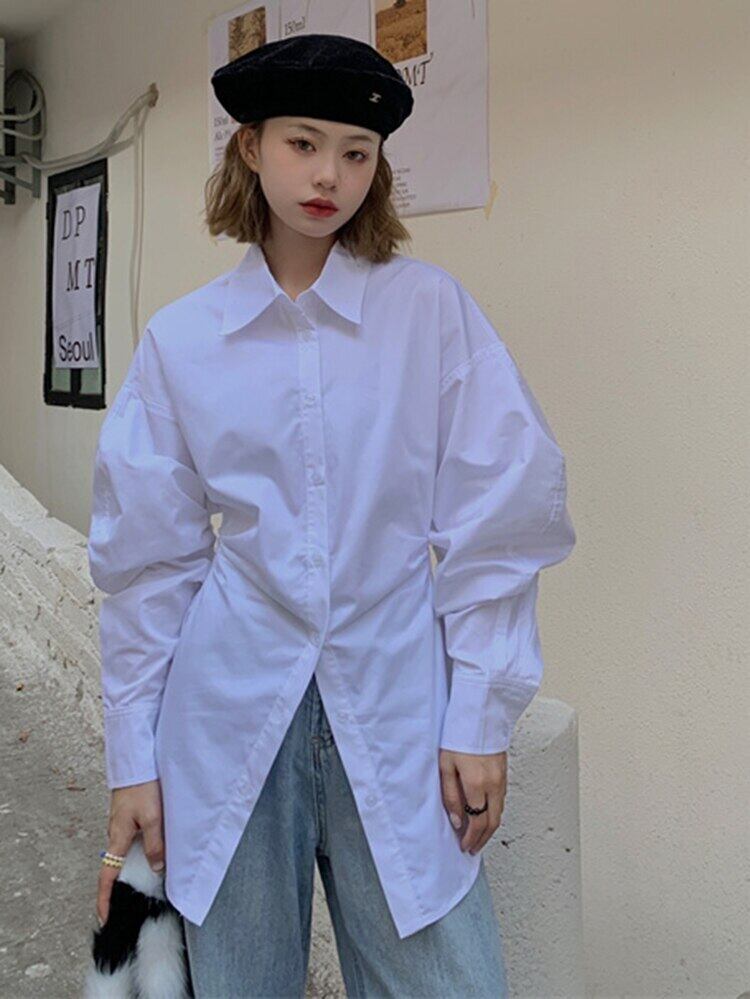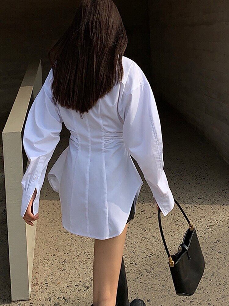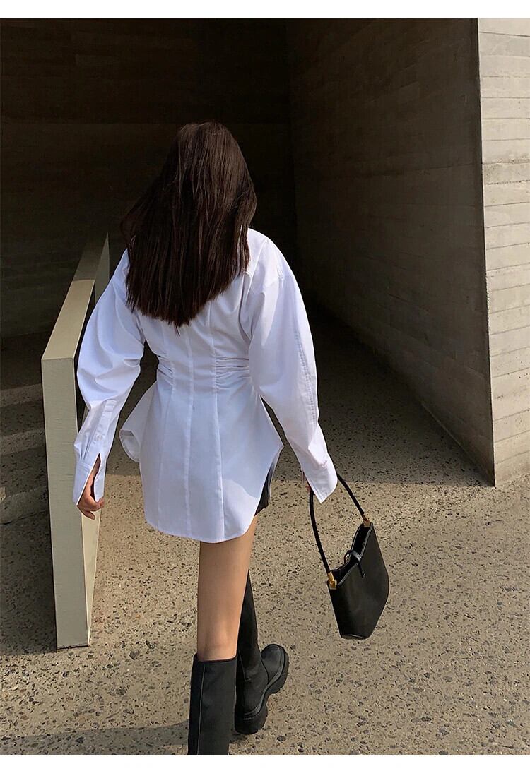 送料無料 ホワイトスリム長袖ブラウス女性トップス 2022 秋折りシャツデエス ロング オータム 秋物 AE1212887712051048610