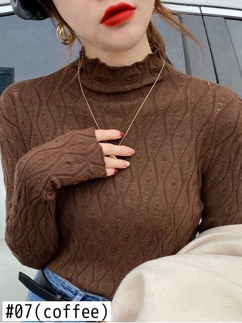 送料無料 中空アウトプルオーバーセーター女性ハーフカラー長袖トップニットセータープルオーバープルオーバー 2022 秋冬 ロング オータム 秋物 ウィンター 冬物 AE1212887727601156715