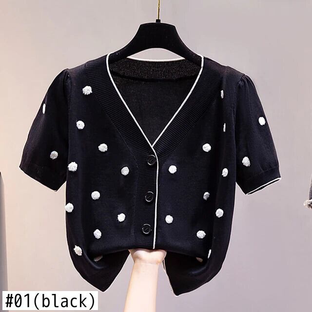 送料無料 ニットカーディガン女性 Tシャツ 2022 V ネックボタンアップトップ半袖 Tシャツ服ポルカドット Tシャツ ショート ハーフスリーブ Vネック AE1212887743341680246
