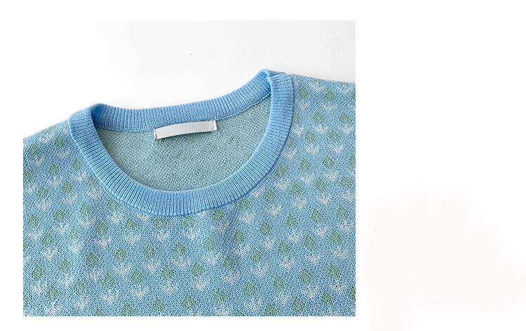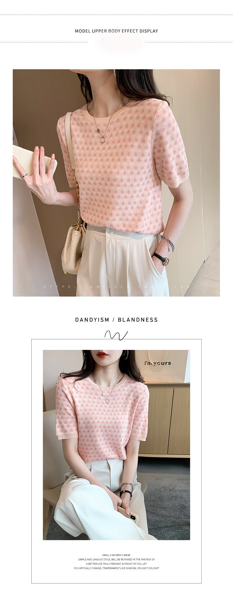 送料無料 プルニットトップス女性の夏のプリントセーターレディース半袖セーター 2023 O ネックプルオーバーニットトップ ショート ハーフスリーブ サマー 夏物 Oネック AE1212887738474007197
