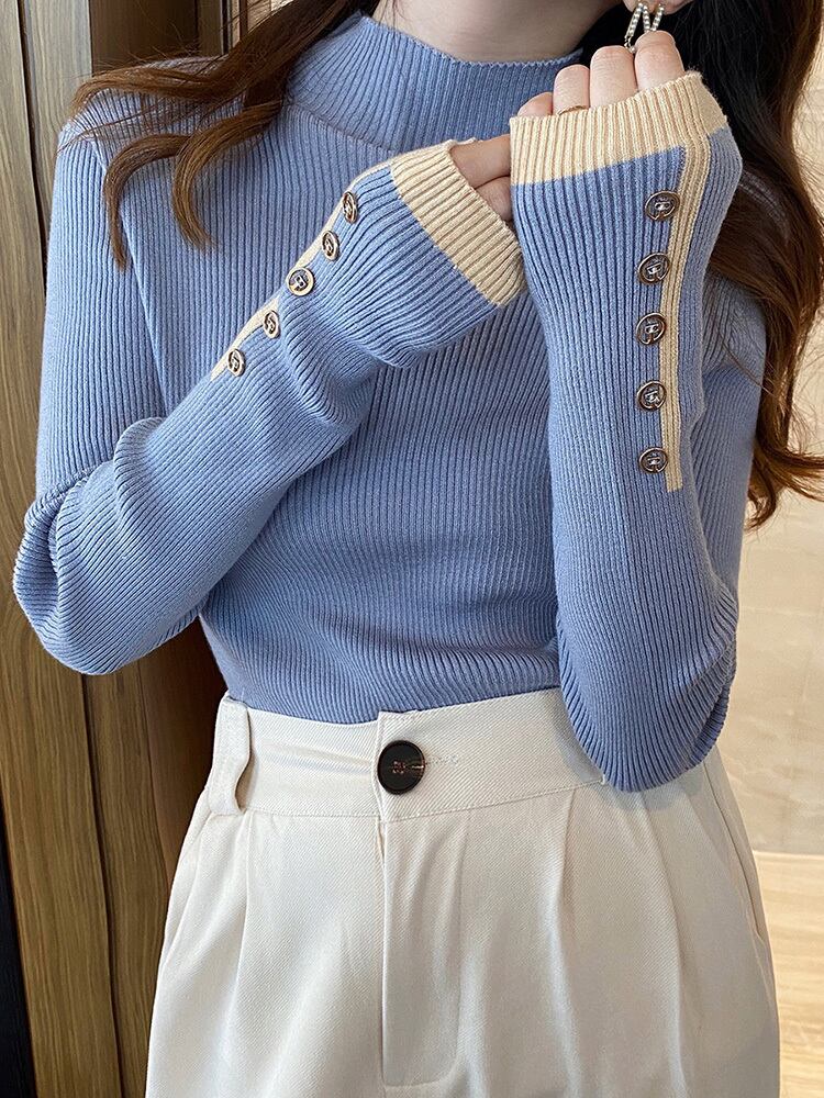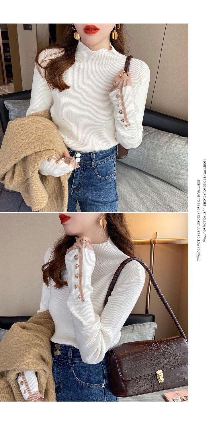 送料無料 タートルネック女性セーターニットプルオーバーセーターボタン長袖トップスリム弾性服 2022 秋冬プル ロング エラスティック 伸縮 オータム 秋物 ウィンター 冬物 AE1212887747652146385