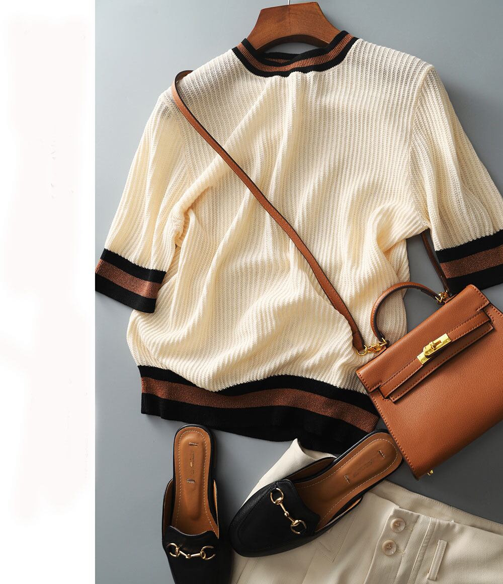 送料無料 夏の Tシャツ 2022 女性ストライプ Tシャツトップス Tシャツニット服半袖 Tシャツ Camisetas ショート ハーフスリーブ サマー 夏物 AE1212887766700260799