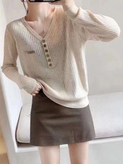 送料無料 2022 秋冬長袖トッププルオーバーセーター女性ボタンアップトップニットセーターレディース弾性プル ロング エラスティック 伸縮 オータム 秋物 ウィンター 冬物 AE121288779599025660 | 女性の為の通販サイト-fashion navi