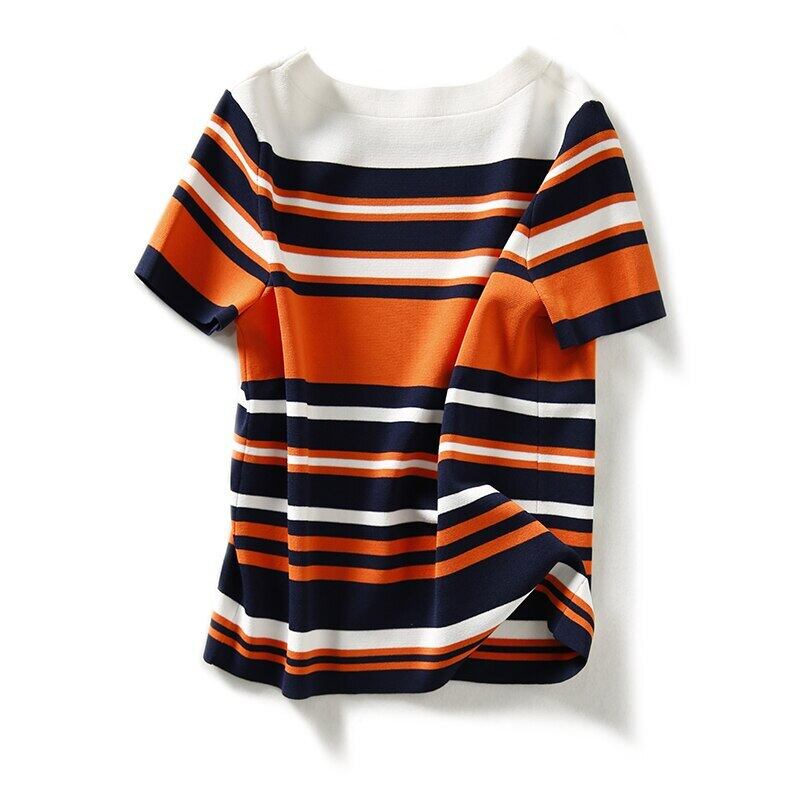 送料無料 LJSXLS 2023 夏ニット Tシャツ O ネック半袖 Tシャツ女性ストライプトップスレディース Tシャツ ショート ハーフスリーブ サマー 夏物 Oネック AE121288772654929148