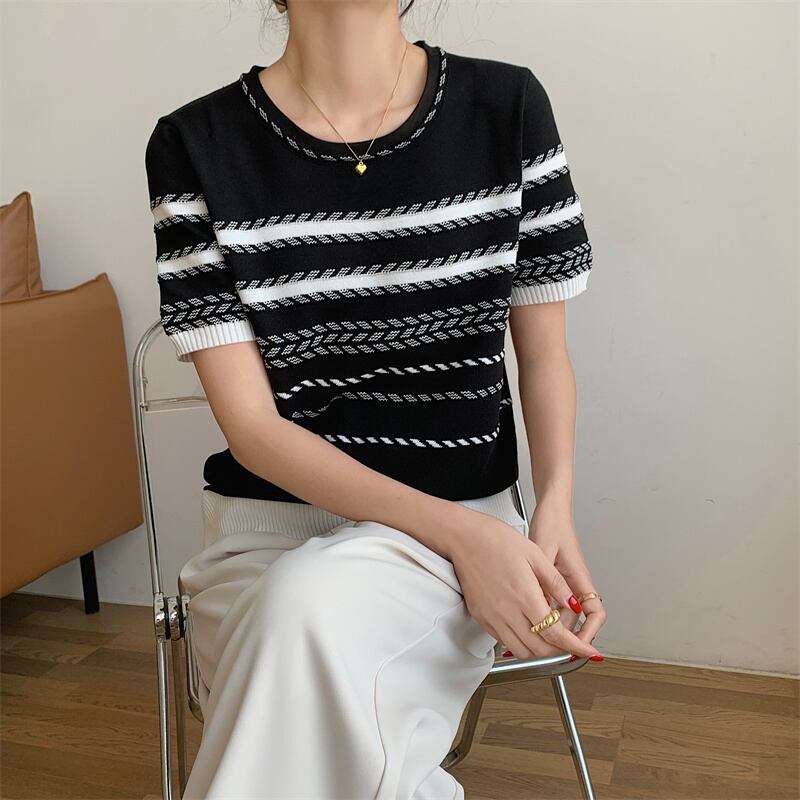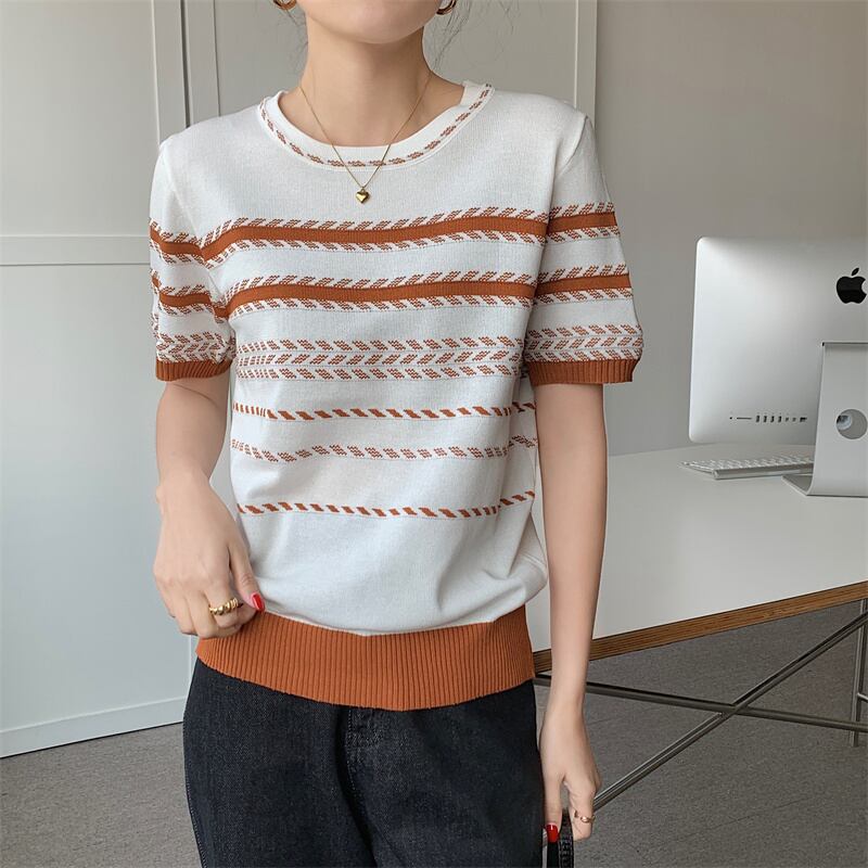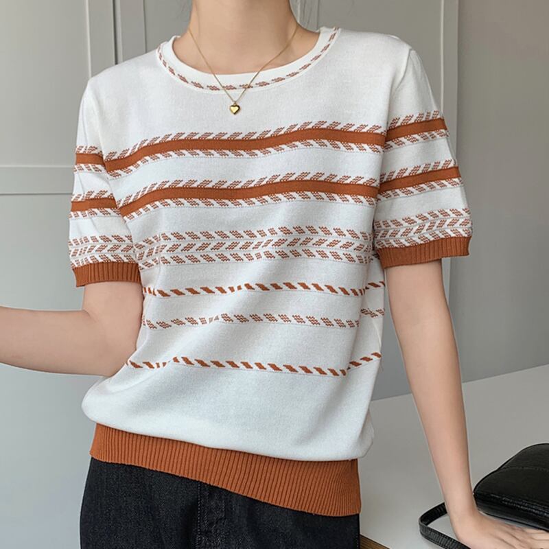 送料無料 Polaras ストライプ Tシャツ半袖 Tシャツ女性ニットレディーストップス 2022 夏の女性の服 Tシャツ ショート ハーフスリーブ サマー 夏物 AE1212887741975313704