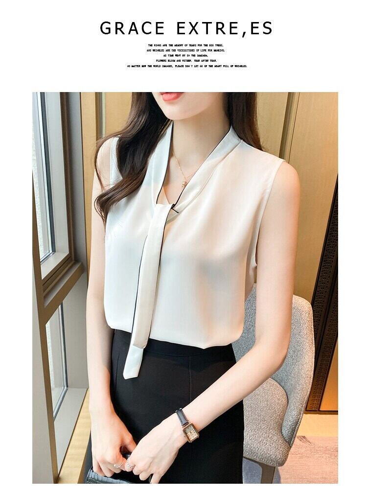 送料無料 シフォンブラウス女性夏 2022 ルーズシャツノースリーブブラックホワイトトップス女性服 サマー 夏物 AE1212887763699259732