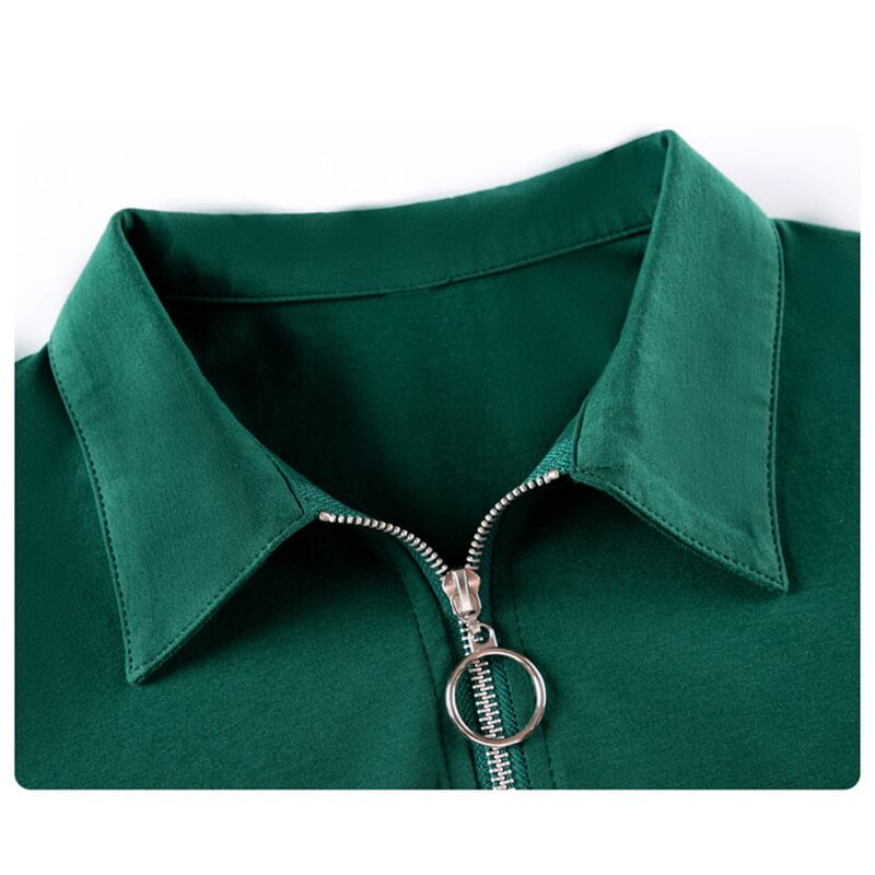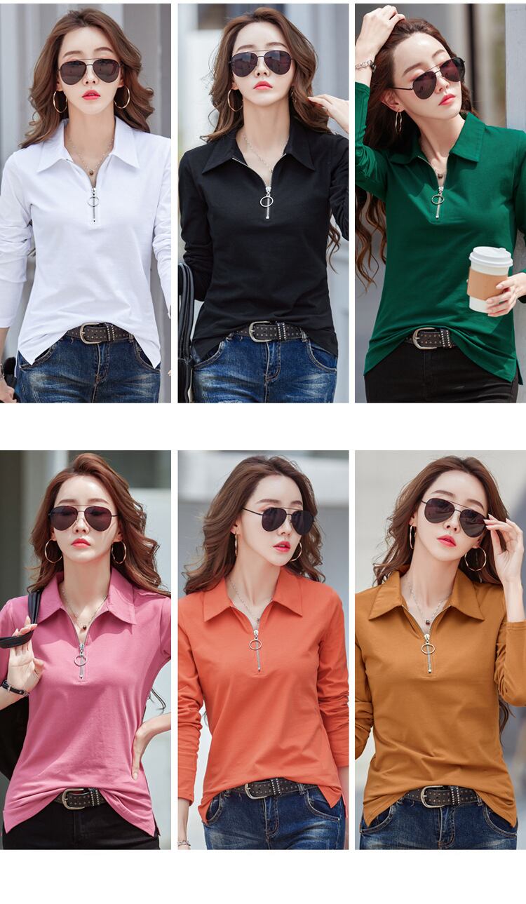 送料無料 LJSXLS Tシャツ女性ジッパーコットン Tシャツ 2022 レディース長袖トップス春フルブラック女性の服 Tシャツ ロング スプリング 春物 AE1212887788628271280