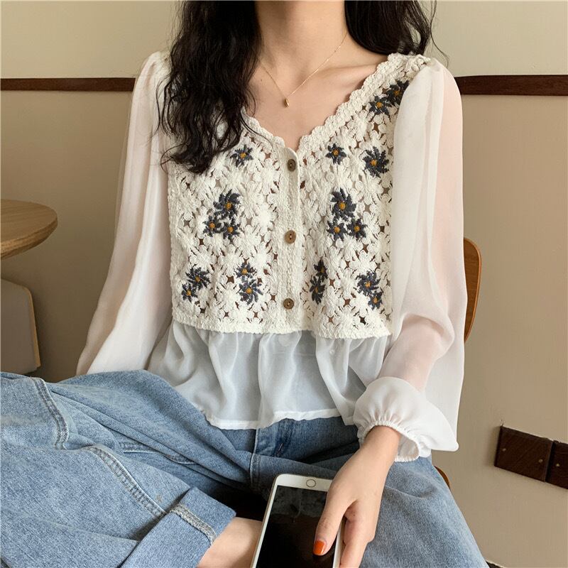 送料無料 春ブラウス女性クロップトップス Prin 中空アウトシャツ長袖トップカーディガン 2022 甘い V ネックブラウス ロング 大人ガーリー スウィート キュート カジュアル スプリング 春物 Vネック AE1212887766148033826 | 女性の為の通販サイト-fashion navi