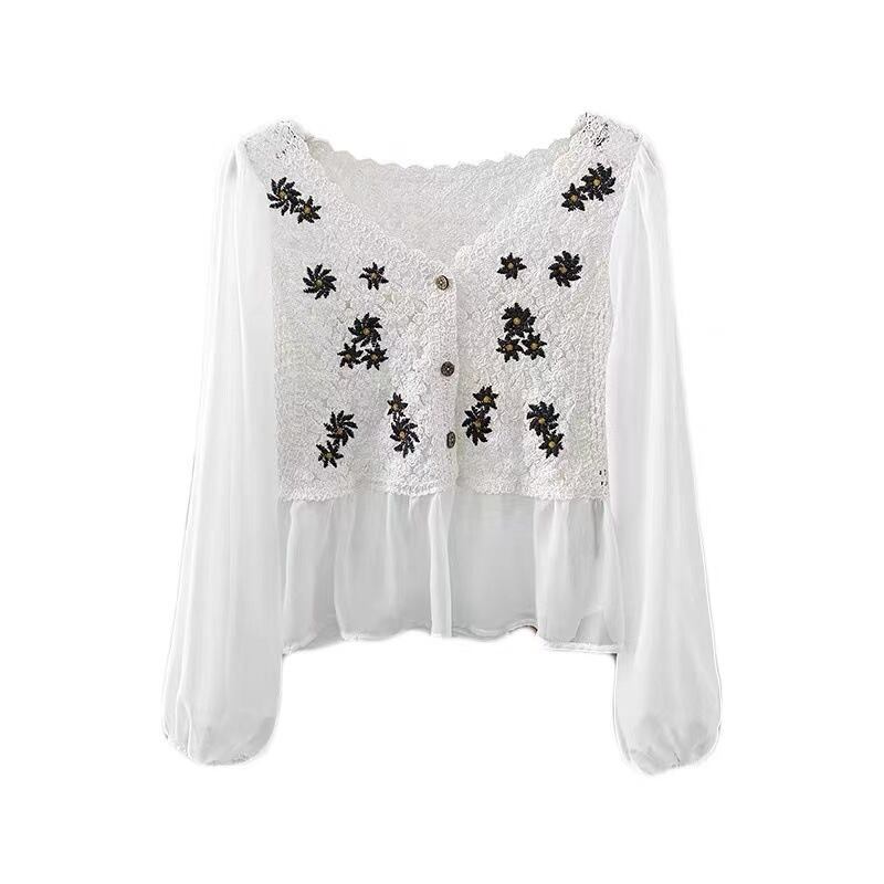 送料無料 春ブラウス女性クロップトップス Prin 中空アウトシャツ長袖トップカーディガン 2022 甘い V ネックブラウス ロング 大人ガーリー スウィート キュート カジュアル スプリング 春物 Vネック AE1212887766148033826