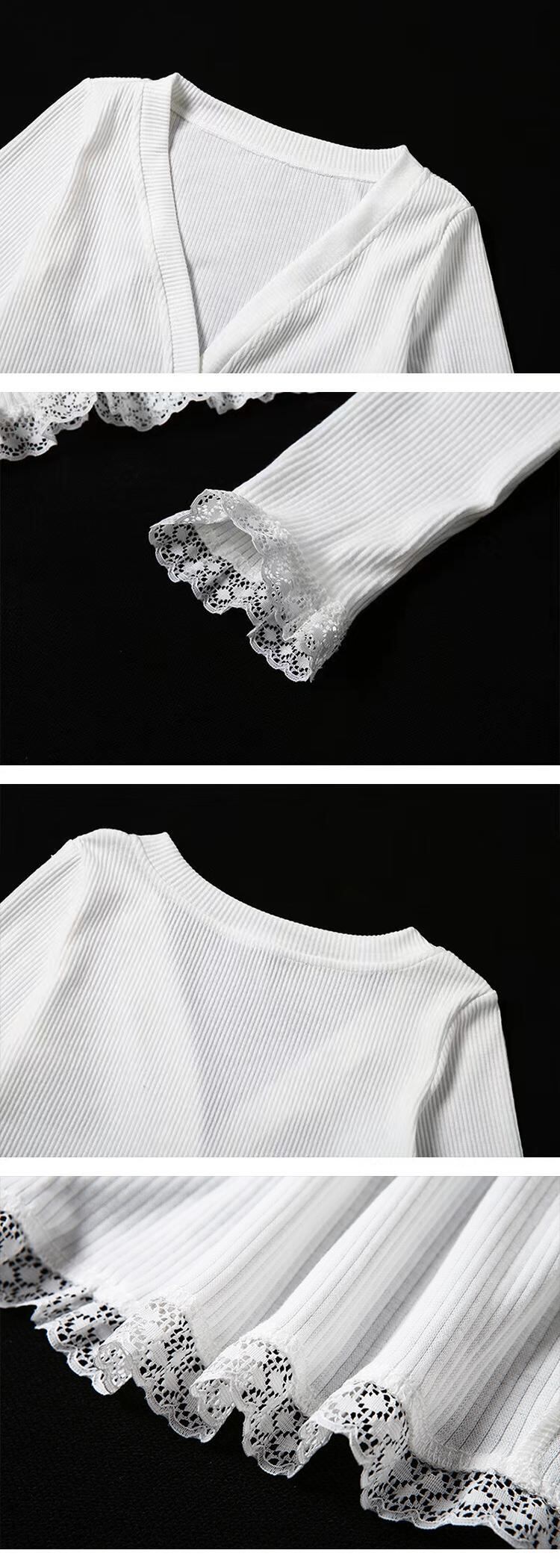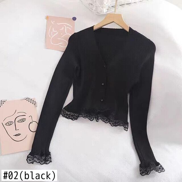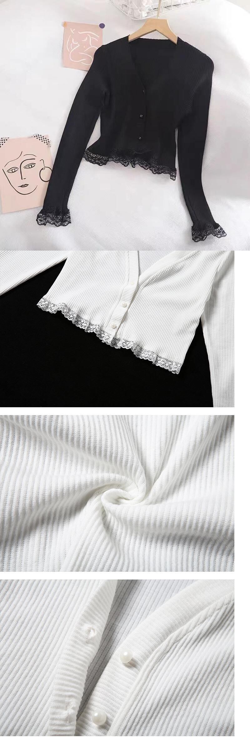 送料無料 ニットカーディガンセーター女性秋長袖 V ネック女性服レースパッチワークセクシーなスリム黒薄いクロップトップスプル ロング ブラック オータム 秋物 Vネック AE12128877274259408