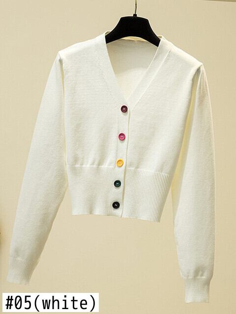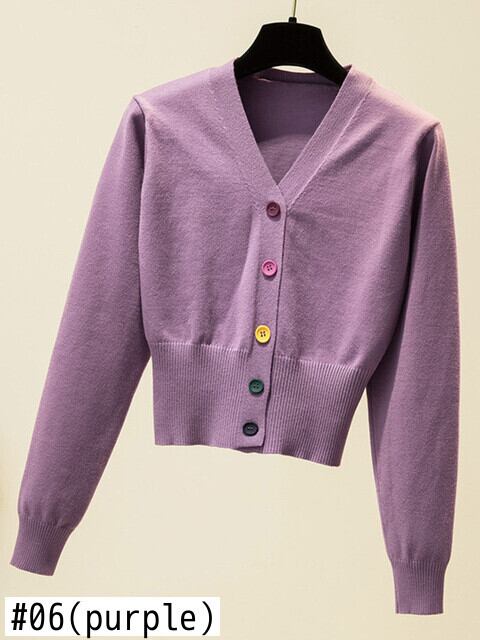 送料無料 長袖ニットセーター女性ピンククロップトップス V ネックボタンカーディガンスリム服春秋ジャージ ロング スプリング 春物 オータム 秋物 Vネック AE121288778866191197