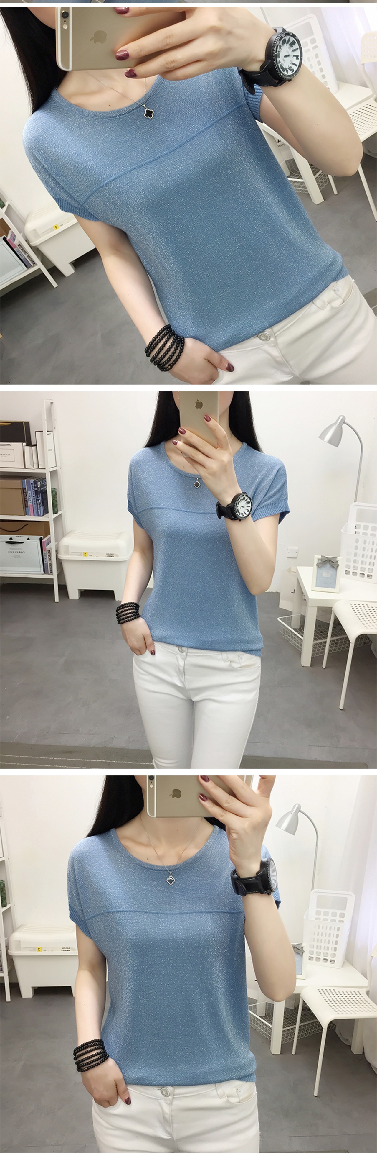 送料無料 ニット明るいシルク Tシャツ女性 2022 半袖 Tシャツ夏の女性のバットウィングスリーブトップス Poleras ショート ハーフスリーブ サマー 夏物 AE1212887765478915178 | 女性の為の通販サイト-fashion navi