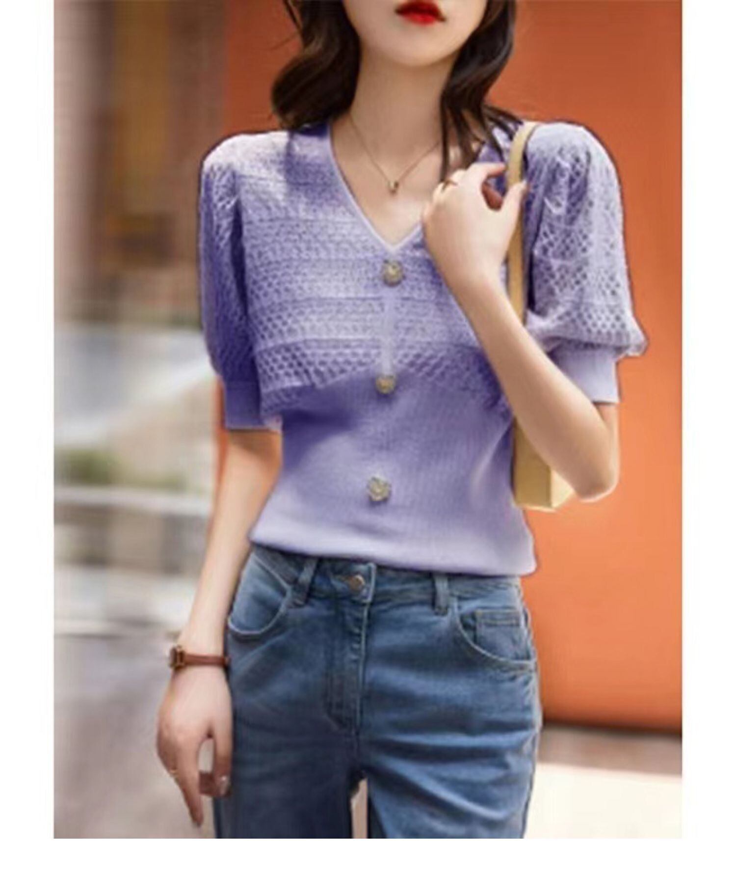 送料無料 2023 服ニット Tシャツ女性薄型半袖 Tシャツ夏の V ネックトップスピンク Tシャツ ショート ハーフスリーブ サマー 夏物 Vネック AE1212887727987958108