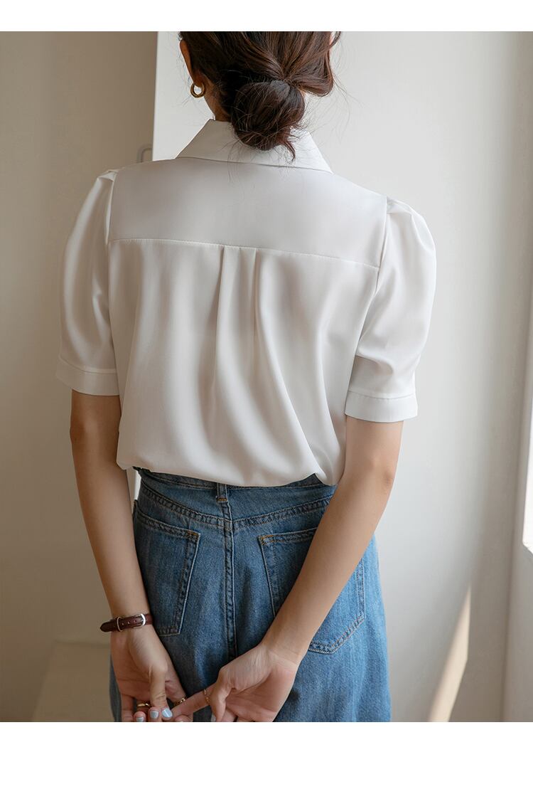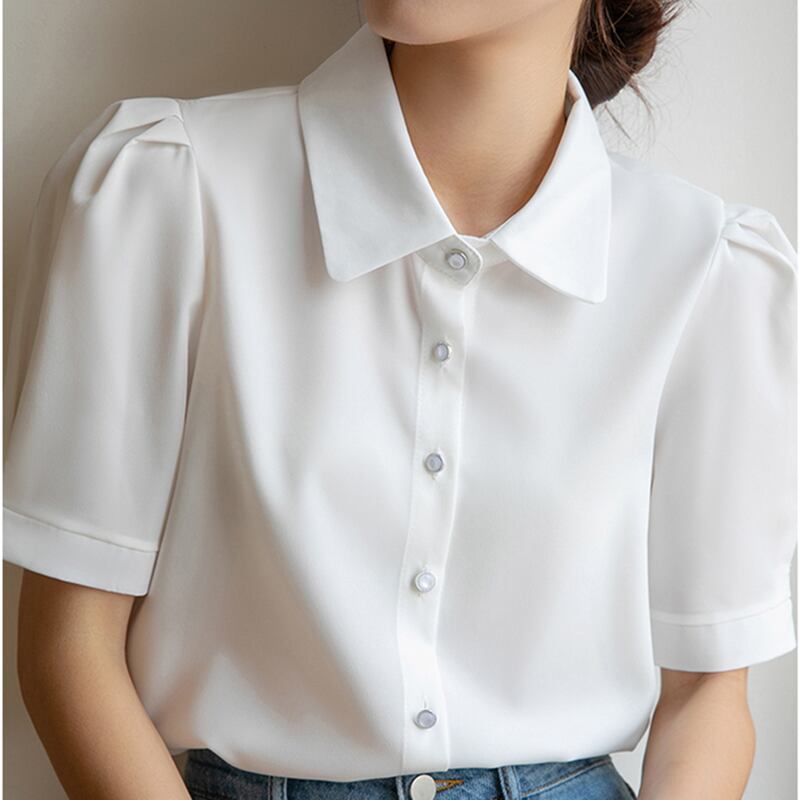 送料無料 2023 夏白シャツ女性半袖ルーズオフィストップスシフォンブラウス ショート ホワイト ハーフスリーブ サマー 夏物 会社 学校 通勤や通学にも AE1212887772321602814 | 女性の為の通販サイト-fashion navi