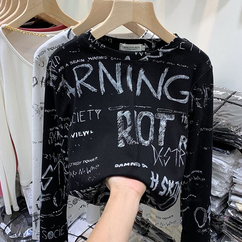 送料無料 2022 春グラフィック Tシャツ長袖 Tシャツ女性綿 O ネックキャラクターレディース Tシャツトップススリム Y2k 服 Tシャツ ロング コットン スプリング 春物 Oネック AE1212887780056839562