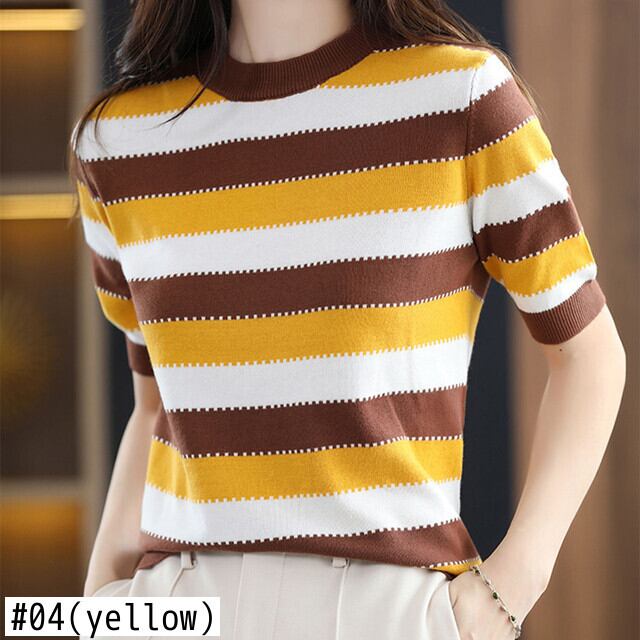 送料無料 O ネックストライプ Tシャツ女性トップス 2023 夏 Camiseta 半袖女性服 Tシャツニット Tシャツ ショート ハーフスリーブ サマー 夏物 AE1212887736047328281