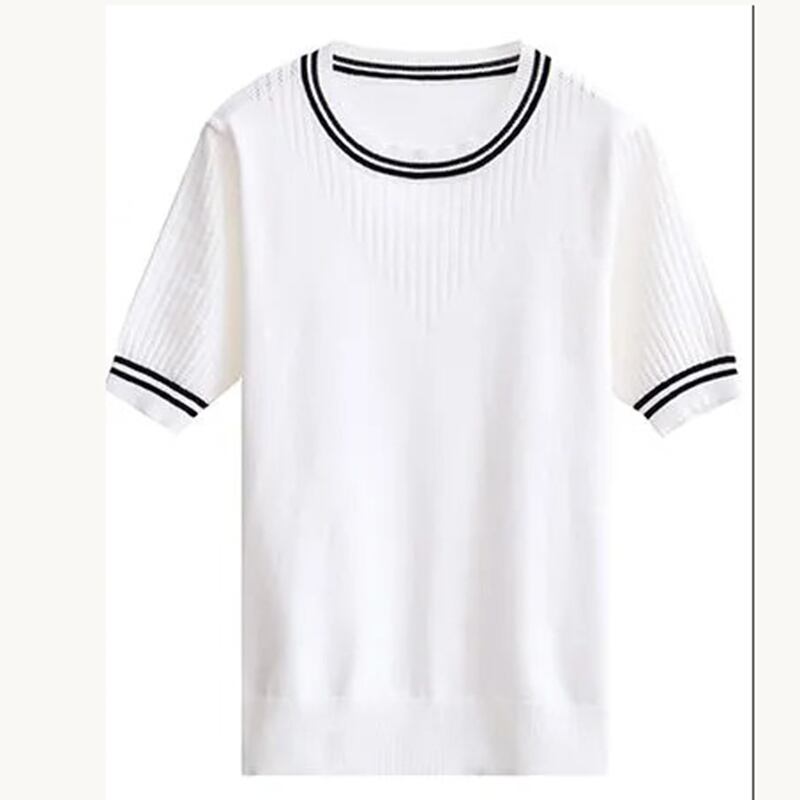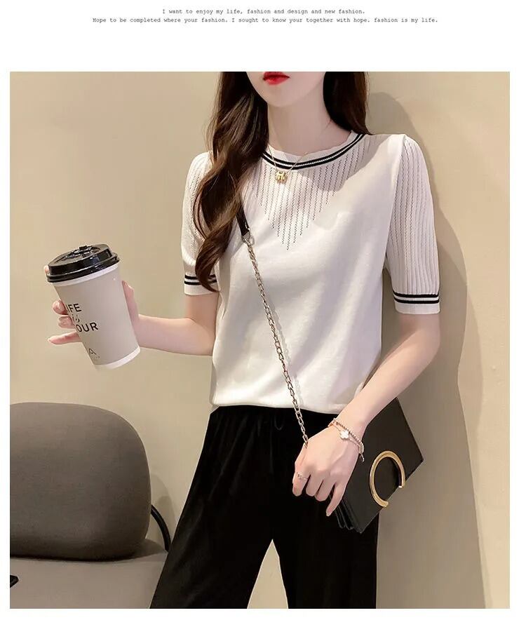 送料無料 Tシャツ白ニット Tシャツ女性中空アウト半袖 Tシャツ 2022 夏薄い女性 O ネックレディーストップス ショート ホワイト ハーフスリーブ サマー 夏物 Oネック AE1212887754778552760